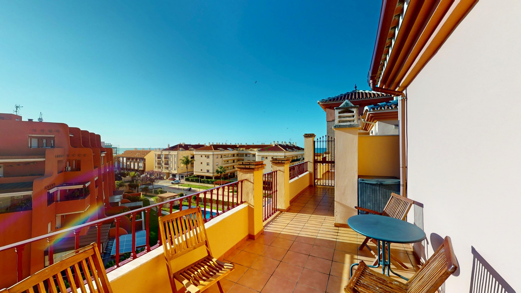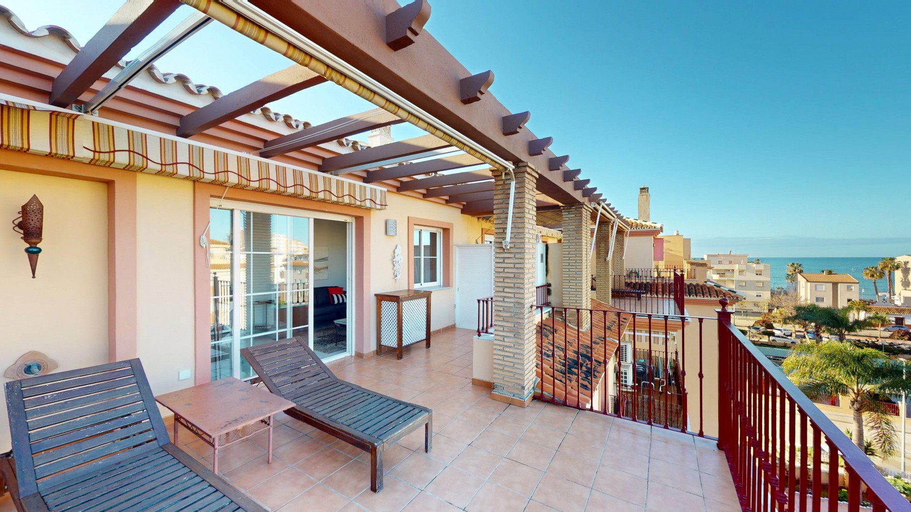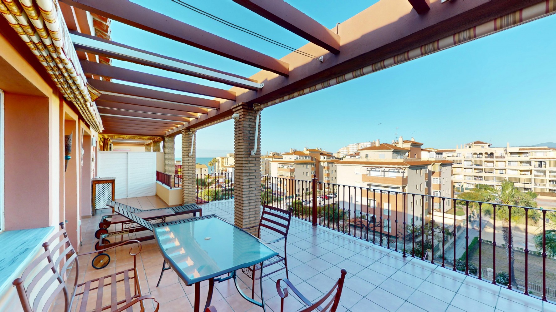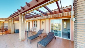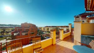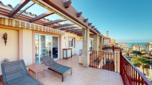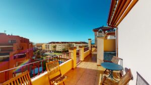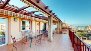 🌅 Przedstawiamy wyjątkowy apartament typu penthouse z 2 sypialniami, położony w spokojnej, nadmorskiej miejscowości Mezquitilla. Ta nieruchomość to idealne połączenie komfortu, funkcjonalności i śródziemnomorskiego stylu życia. Na uwagę zasługują dwie prywatne tarasy z widokiem na morze – idealne miejsce na relaks, posiłki na świeżym powietrzu lub spotkania z bliskimi.