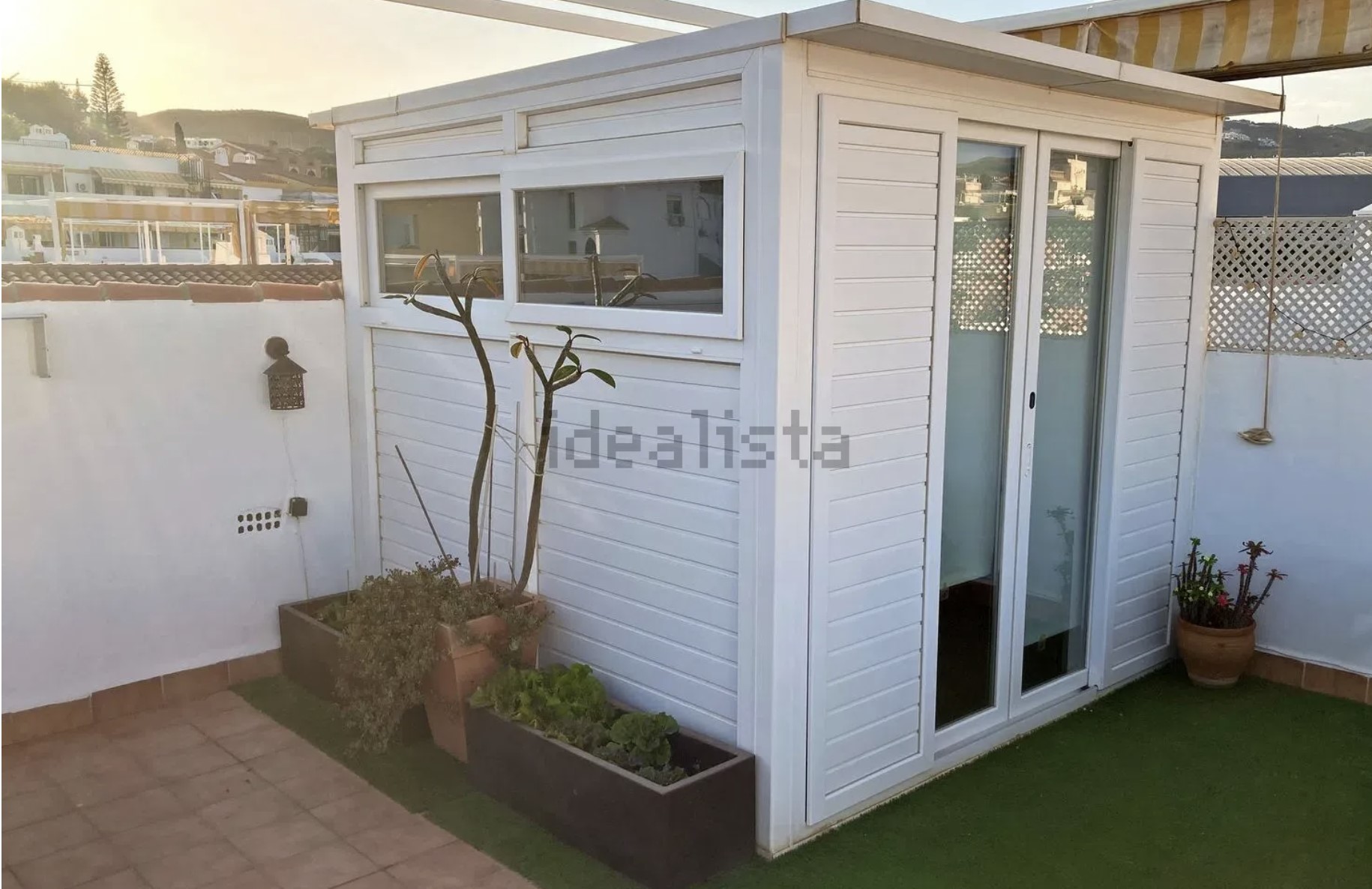 - Taras prywatny z widokiem na morze i solarium z dodatkowym pomieszczeniem zamkniętym oknem typu climalit, idealnym na biuro, małą siłownię lub miejsce do przechowywania
